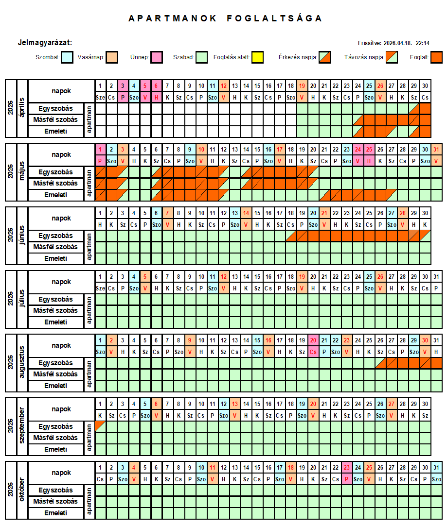 Foglalási információ: Augusztus 19. és 24. közötti időszakban legalább 3 éjszakára lehet foglalni apartmant vagy a vendégházat.